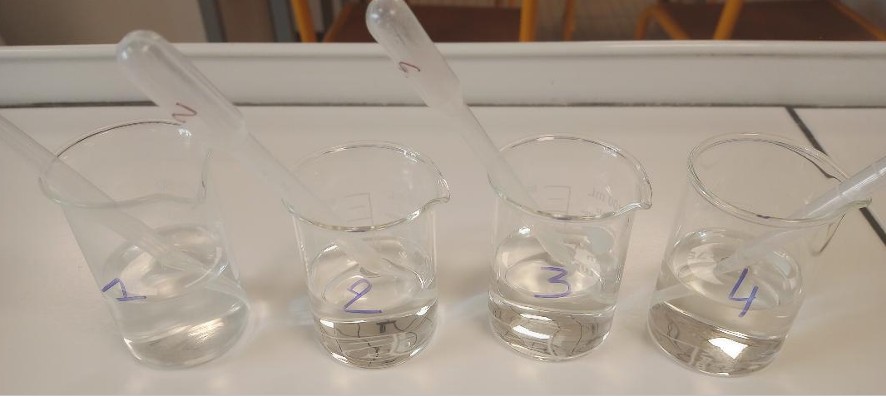 Il s’agissait d’identifier la nature de l’eau présente dans 4 béchers :