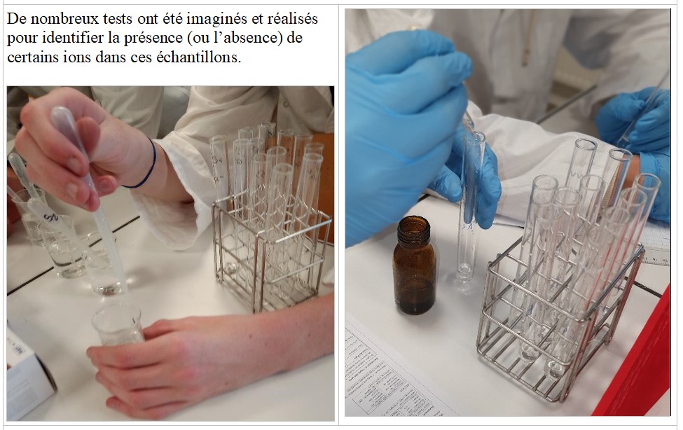 Les élèves de Sciences et Laboratoire identifient 4 eaux minérales grâce à des tests d’ions