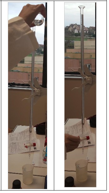 Félicitations aux différents groupes pour avoir réussi avec brio à réaliser d’une part cette expérience impressionnante et d’autre part son exploitation pour trouver la concentration des ions hydrogénocarbonate dans l’eau minérale étudiée.