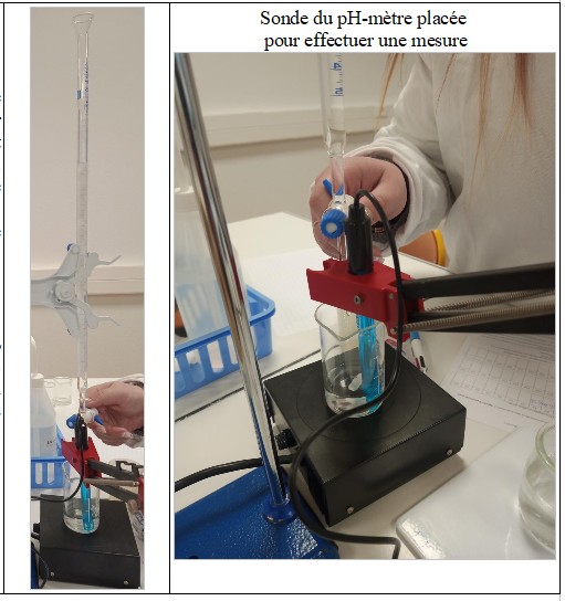 Mais cette fois-ci, pas de changement de couleur pour déterminer l’instant où se produit l’équivalence, il fallait en revanche mesurer le pH du mélange tout au long de l’expérience.